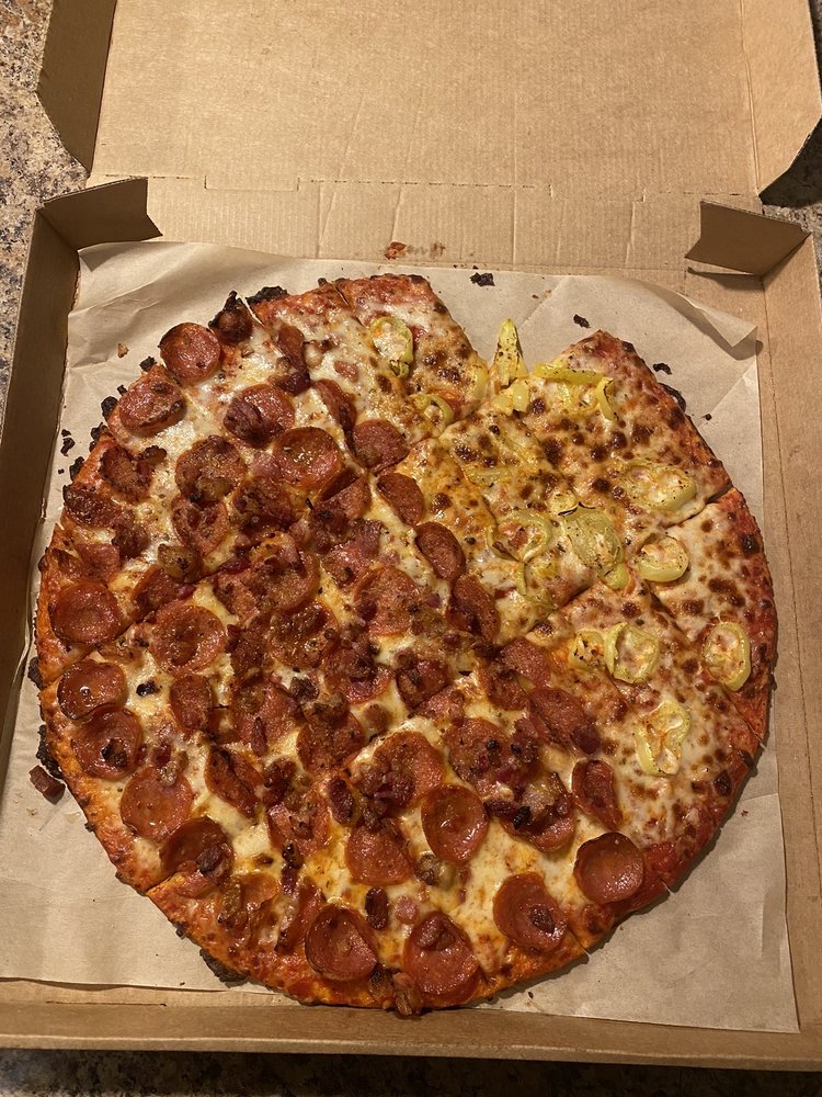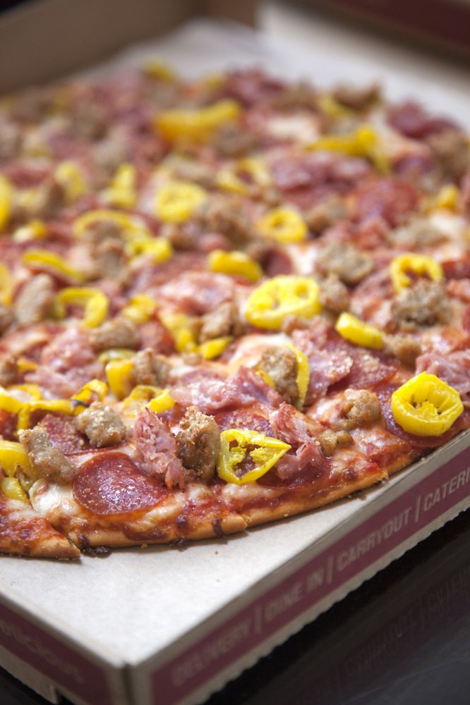 Heritage pepperoni, family recipe sausage, shaved ham, banana peppers, smoked Provolone, Romano.